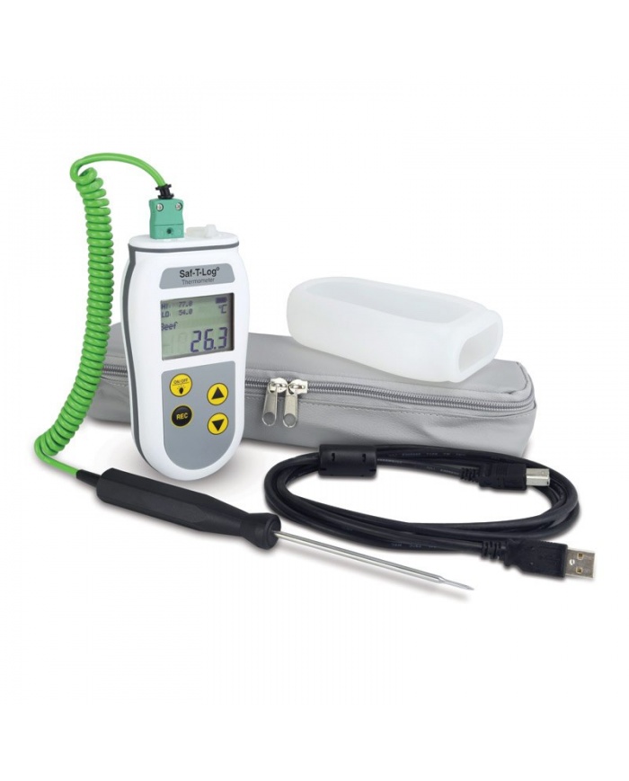 Livsmedelshygientermometersats levereras i en användbar ABS-bärväska med en temperaturloggbok, en kartong med 100 sondservetter och ett spårbart kalibreringscertifikat. Denna termometer- och sondsats är utformad för livsmedels- och cateringindustrin och miljöhälsovårdspersonal.