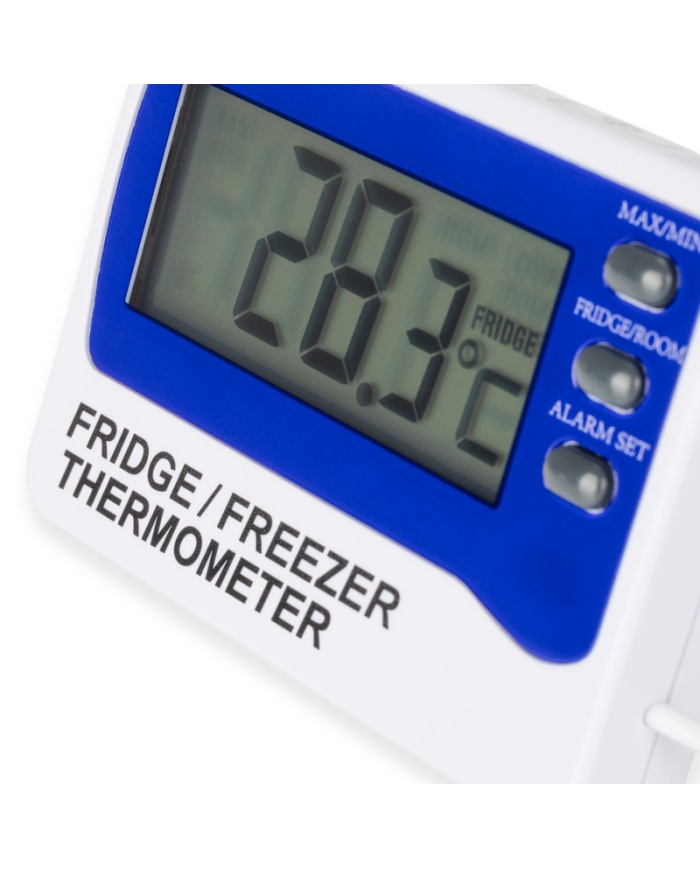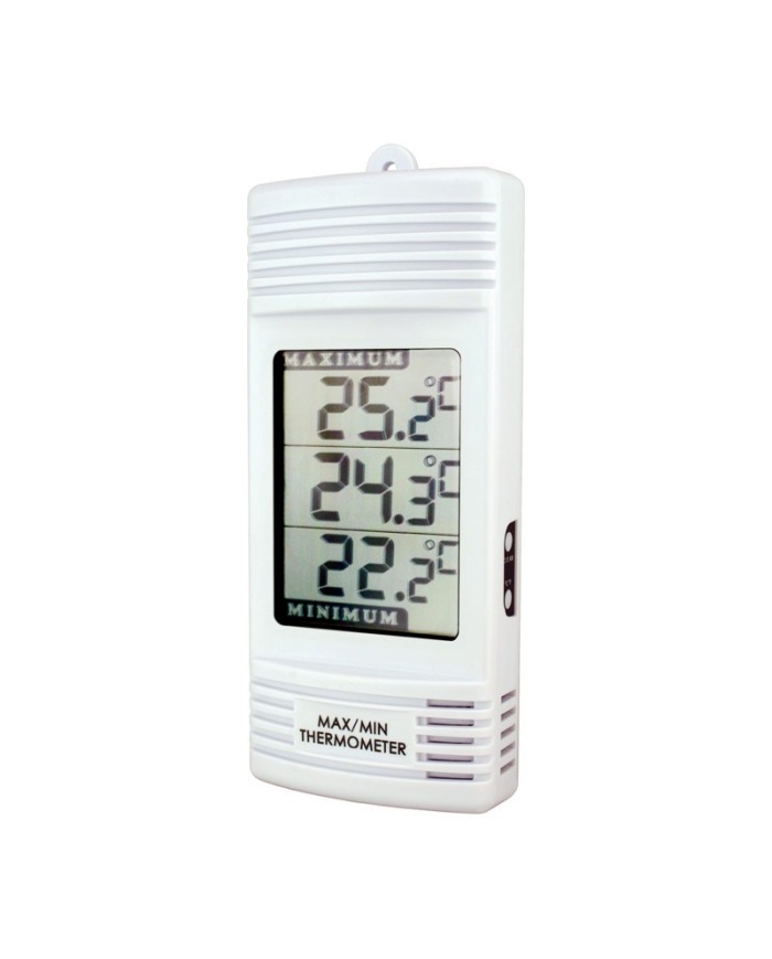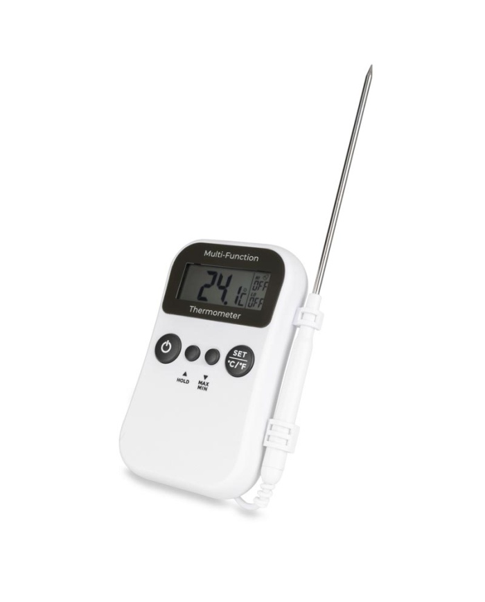 1.812 krETI Digital termometer med samtidig visning av intern och extern givare på sladd. Visning av Max/Min och programmerbart larm.