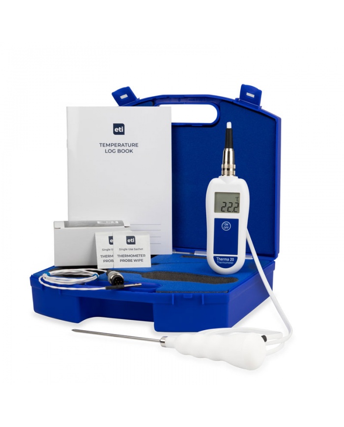 5.244 krETI Catering kit i väska för professionellt bruk med Therma 20® termometer, 2 st termistorgivare, rengöringsservetter och loggbok