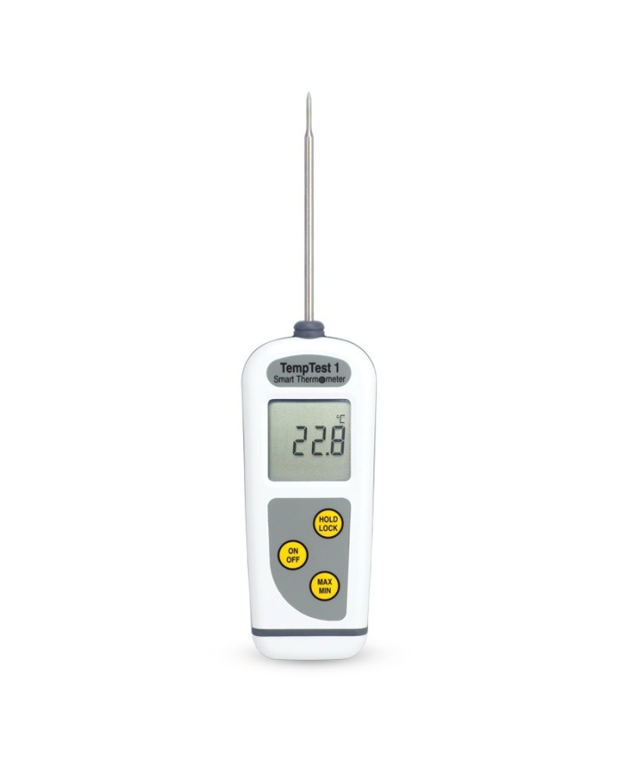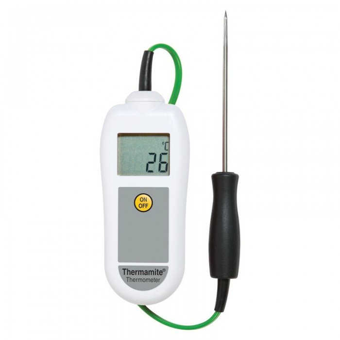 1.040 krETI Termometer Thermamite® för HACCP och egenkontroll för livsmedel. Vitt hölje. Inklusive fast insticksgivare med kabel. Mäter mellan -50°C till 300°C. Kalibreringscertifikat ingår.