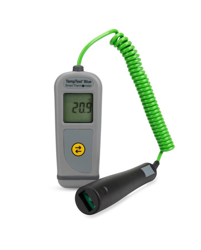 3.050 krETI TempTest® Bluetooth termometer. Med spiralkabel för direktmonterade givare utan kablar. Skickar mätdata trådlöst. SDK-kit finns som utvecklarverktyg. Roterande display. IP67.