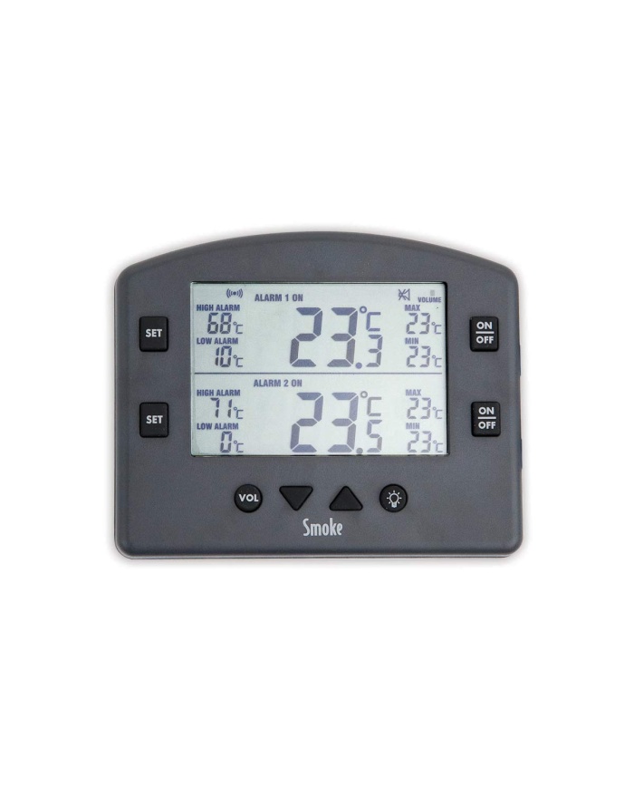 Det ursprungliga priset var: 1.190 kr.1.168 krDet nuvarande priset är: 1.168 kr.ETI Termometer för rökar & BBQs. 2 st givare. Visar aktuellt värde och max/min. Med alarminställningar