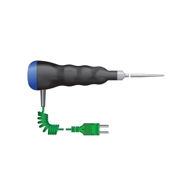 ETI Givare, termoelement typ K, ytgivare, vinklad 45°, med kraftigt handtag, Ø19mm x 130mm. 1 meter PVC-spiralkabel