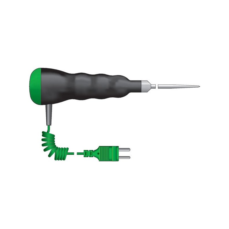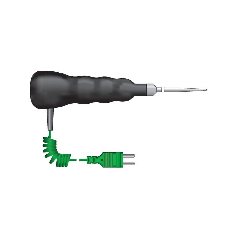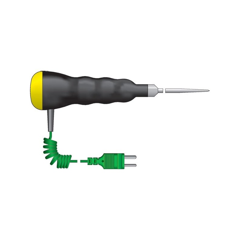ETI Givare, termoelement typ K, korkskruv-givare med T-handtag för hårda eller semi-frysta livsmedel, Ø8 x 100mm, 1 meter värmetålig PVC-spiralkabel