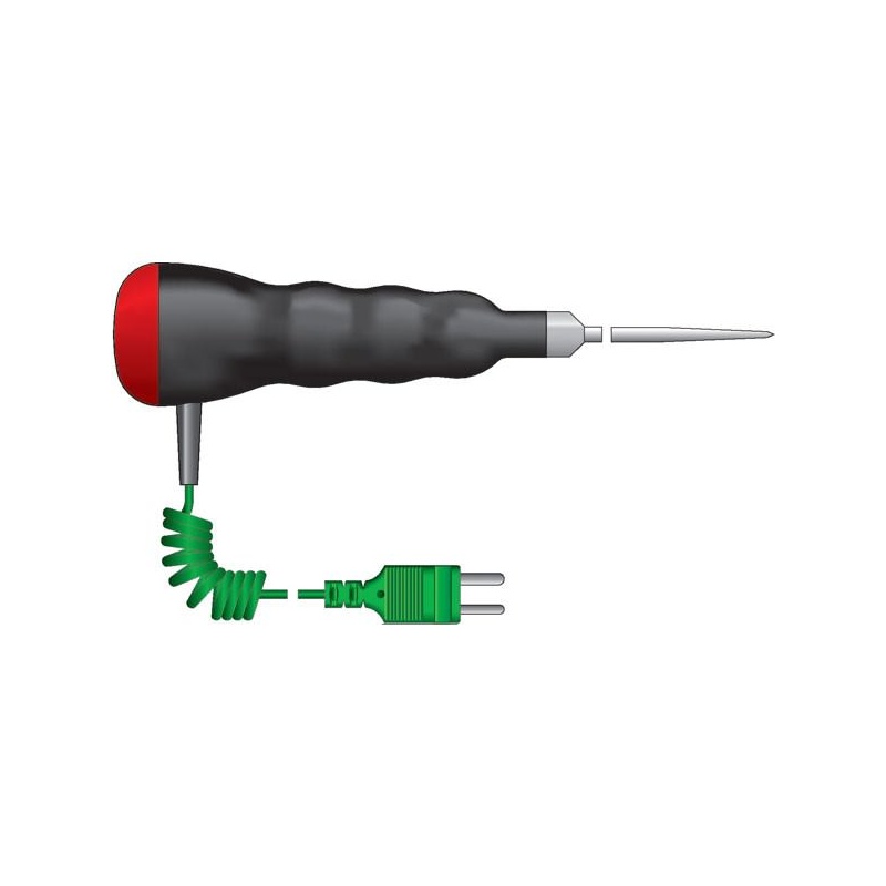 ETI Givare, termoelement typ K, ytgivare, rak, med kraftigt handtag, Ø19mm x 130mm. 1 meter PVC-spiralkabel