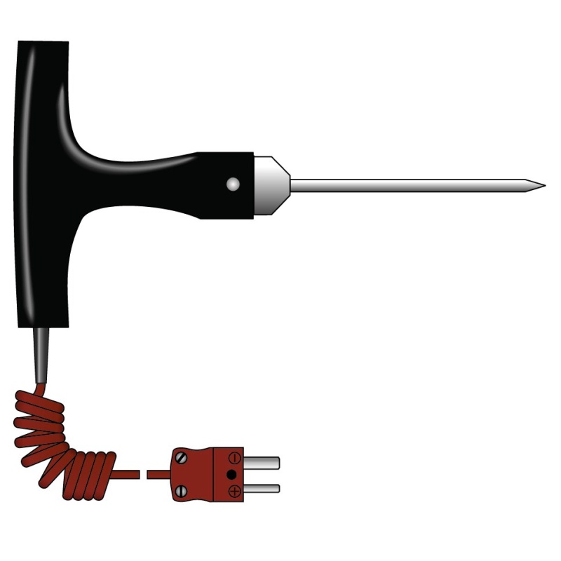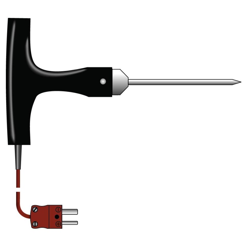 ETI Givare, termoelement typ T, lång givare Ø6,35 x 300mm, med T-format handtag, för stora kärl, komposter, etc, 1 meter spiralkabel