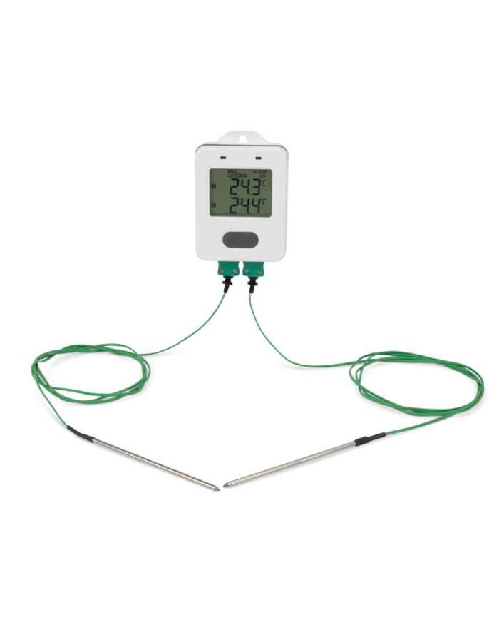 2.354 krETI Temperaturlogger ThermaData® för kylar och frysar, inklusive 2st givare Typ K som simulerar temperaturen i livsmedel. Gratis programvara.