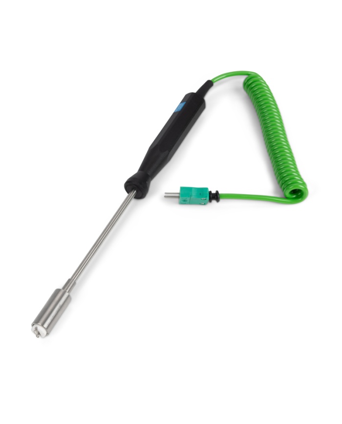 Högtemperatursond – Denna tunga ytsond med hög temperatur är idealisk för att mäta temperaturen på galler, värmeplattor och andra applikationer som kräver ett mätområde med hög temperatur. Svarstiden är mindre än en sekund. Sondens mått är 12 mm i diameter och 130 mm i längd. Sondtemperaturområde -100 till 1000 °C. En rätvinklig version finns också, beställningskod 17-123028.