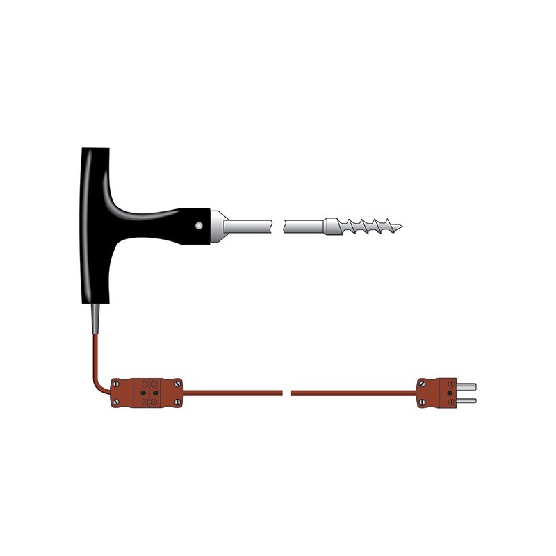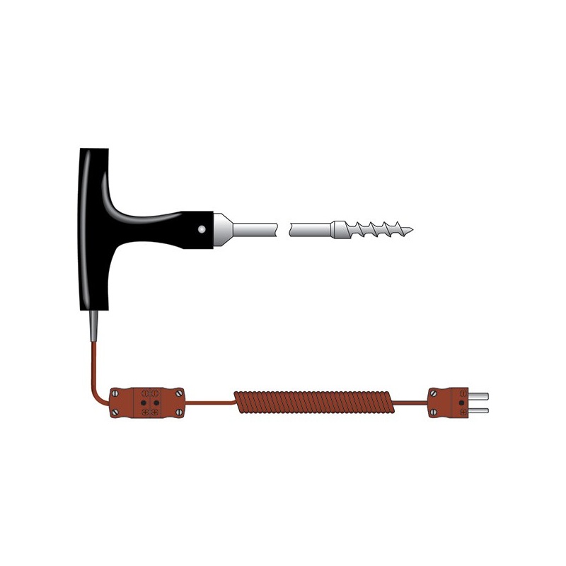 Termoelement typ T luft- eller gastemperatursond – Denna temperatursond med snabb respons, luft- eller gastråd T termoelement har utformats för att fungera tillsammans med termometrarna ETI Therma 22 och Therma 22 Plus och är idealisk för mätning av lufttemperaturer i kylskåp, frysar, kylskåp och liknande. Sonden är Ø2,4 mm och levereras med en PTFE-kabel på en meter. Denna temperatursond har en svarstid på 1 sekund. Temperaturområde för sonden -75 till 250 °C.