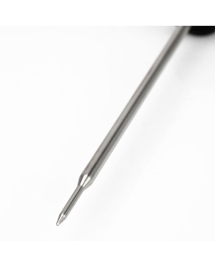 Snabbresponstermometersond – Denna reducerade spets, snabba respons, temperatursond i rostfritt stål är både hållbar och mångsidig – idealisk för användning i ett brett spektrum av applikationer, inklusive vätskor eller halvfasta ämnen, dvs. känsliga livsmedel, mjukt gummi och andra liknande material.