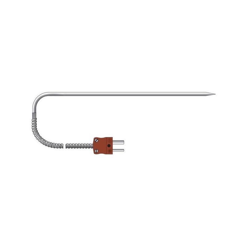 Högtemperatursond – Denna tunga ytsond med hög temperatur är idealisk för att mäta temperaturen på galler, värmeplattor och andra applikationer som kräver ett mätområde med hög temperatur. Svarstiden är mindre än en sekund. Sondens mått är 12 mm i diameter och 130 mm i längd. Sondtemperaturområde -100 till 1000 °C. En rätvinklig version finns också, beställningskod 17-123028.