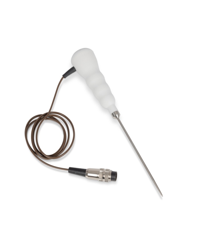 Denna färgkodade Therma 22 T termoelementpenetrationssond är mångsidig och stark och innehåller ett kraftigt, räfflat polypropenhandtag med ett färgkodat ändlock – välj färg från rullgardinsmenyn eller färgblocken. Idealisk för många temperaturmätningsapplikationer, inklusive vätskor, halvfasta ämnen och granulära material. Svarstid mindre än fem sekunder. Temperaturområde för sonden -75 till 250 °C.