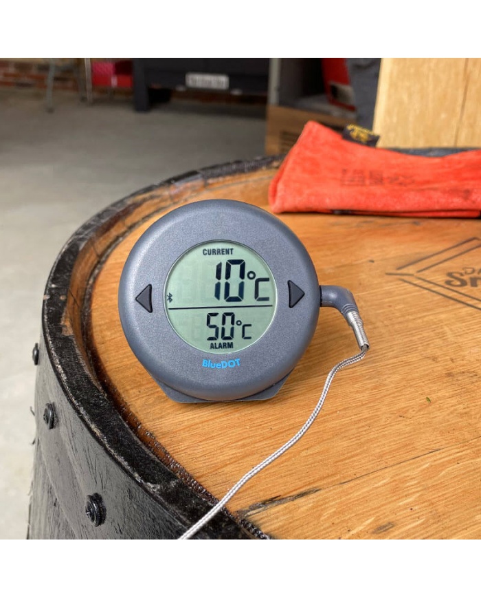 Övervaka från utsidan av ugnen eller grillen med hjälp av den digitala displayen. Ställ bara in ditt temperaturmål med upp- eller nedknapparna, eller direkt från din smartphone, så piper BlueDOT när den kommer dit. Hör dina larm på BlueDOT och din smarta enhet med den kostnadsfria mobilappen. Bluetooth-anslutningen låter dig också spåra max/min-temperaturer och rita din kock.