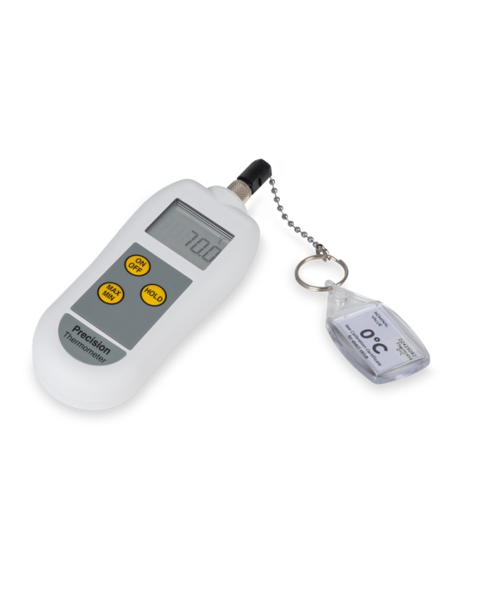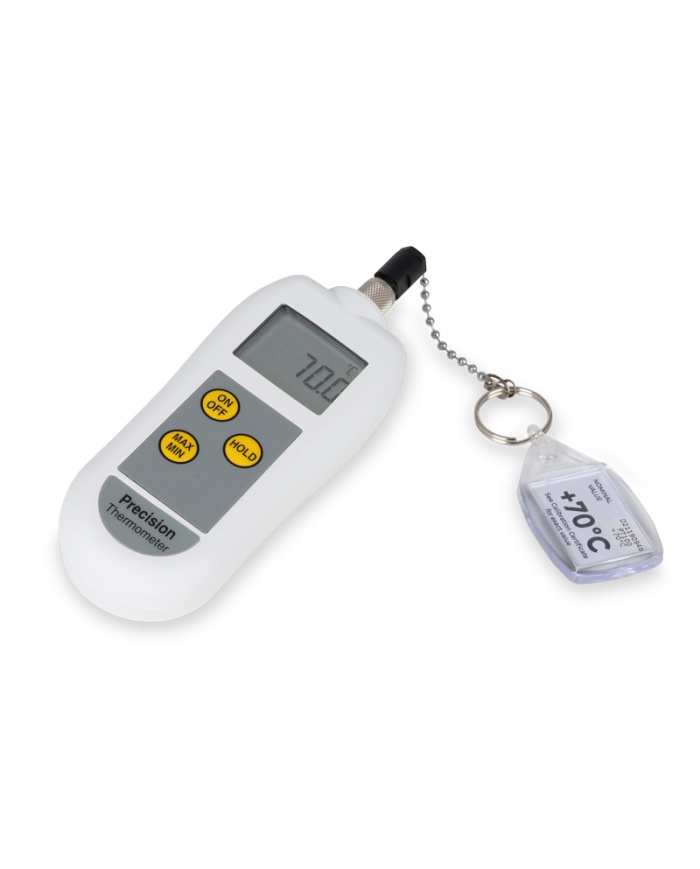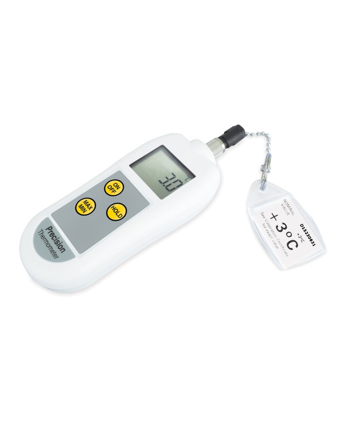 Precisionstermometern är en PT100/RTD-termometer med hög noggrannhet, som överensstämmer med EN 13485, och har en upplösning på 0,1 °C över intervallet -199,9 till 850 °C, med en noggrannhet på 0,2 °C.