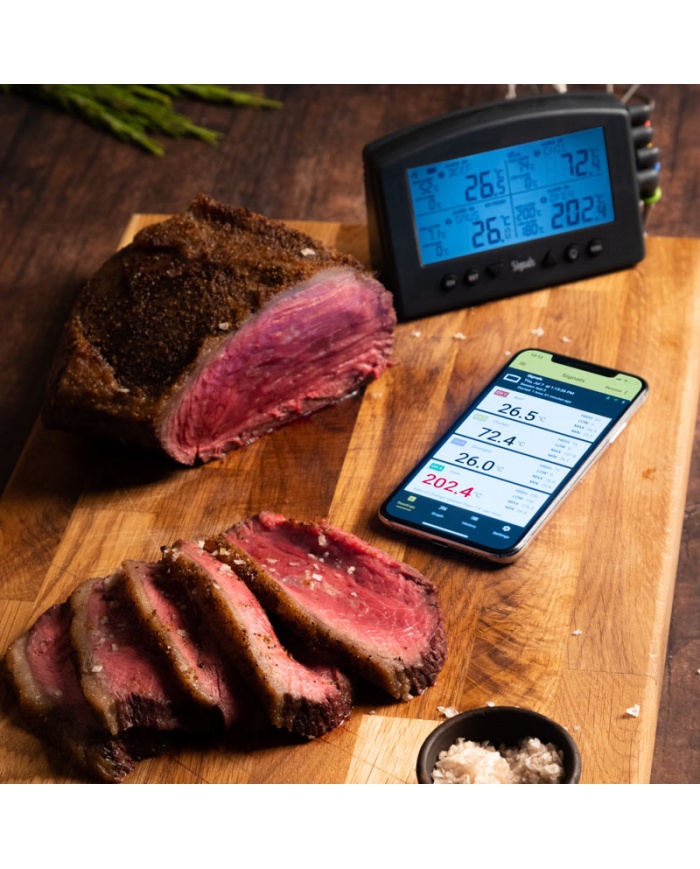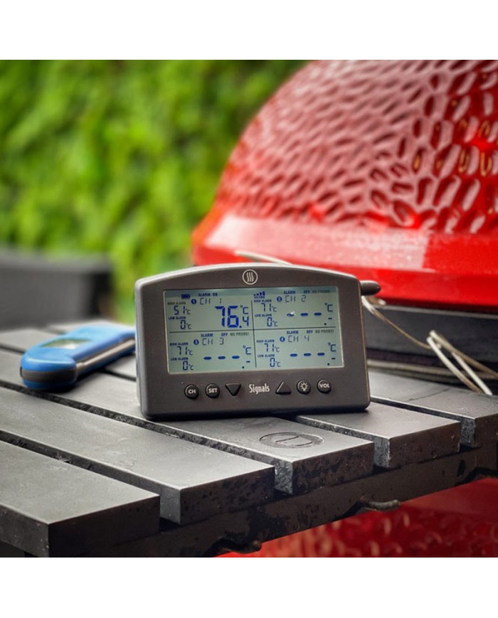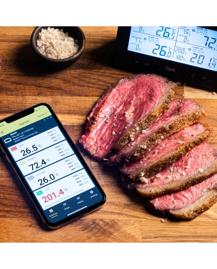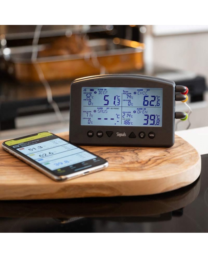 Signalerna med inbyggt Wi-Fi och Bluetooth har 4 kanaler för kontinuerlig temperaturövervakning och har utformats för tävlingsgrilllag, kommersiella rökhus, professionella kockar och de som vill laga mat som dem.