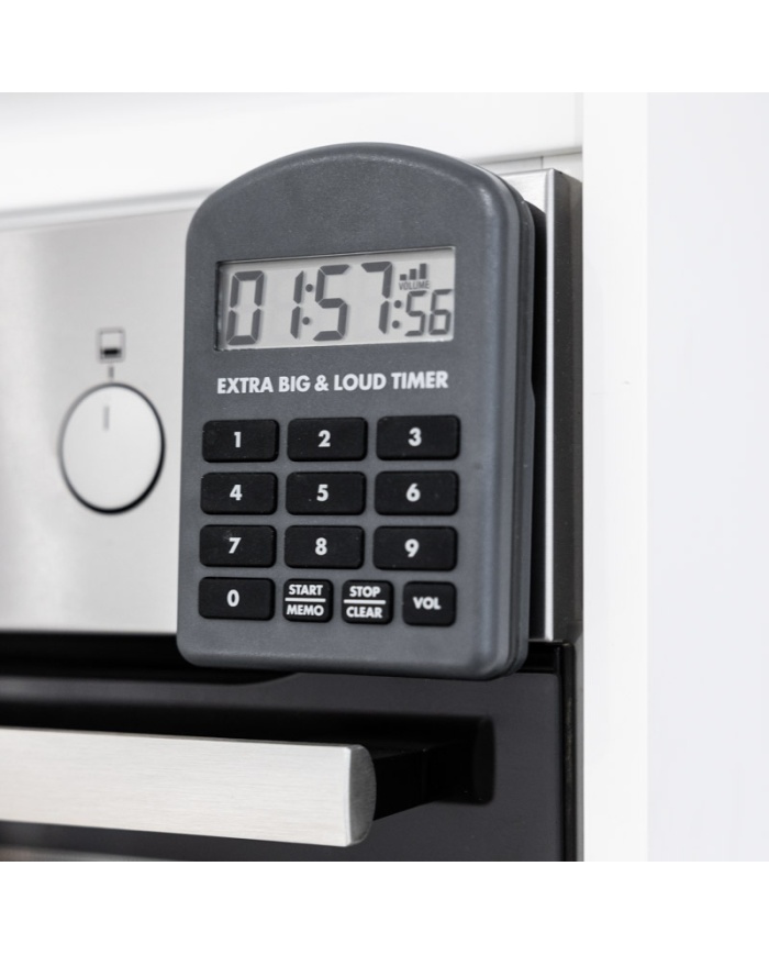 Extra Big and Loud-timern är en köks- och matlagningstimer som har robust hölje och är vattentät upp till IP65, har variabel volymkontroll, så att användaren kan ställa in upp till en maximal volym på 110 decibel – perfekt i hektiska professionella kök.
